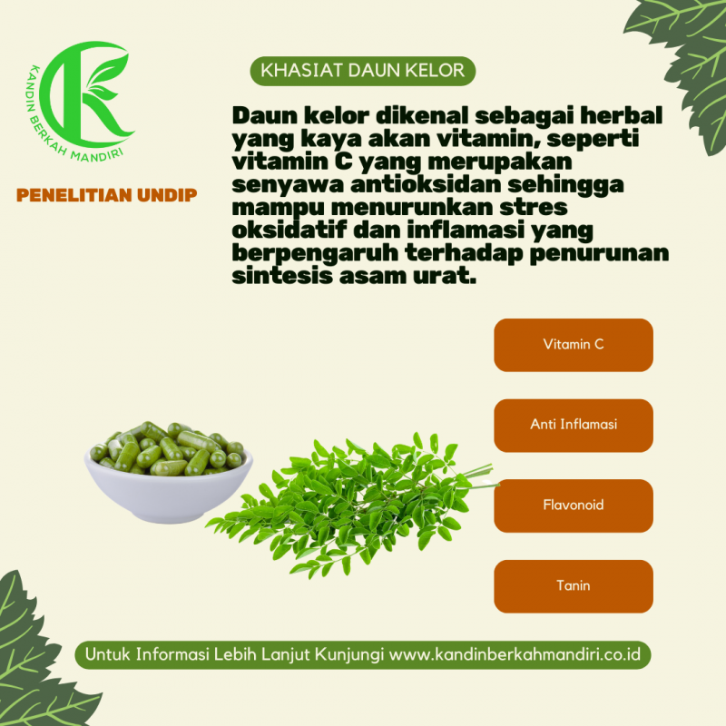 Dengan demikian, daun kelor bisa menjadi alternatif alami yang efektif untuk membantu menurunkan kadar asam urat dalam darah dan meringankan gejala asam urat.